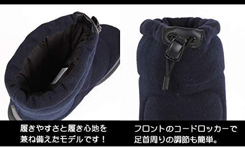 柔らかい風合いのナイロンソフトアッパーを採用していて防寒性にも優れています。さらに甲部分が合成皮革で補強されていることにより耐久性を高めている特徴もあります。サイドファスナーを開いてスムーズに着脱する事も可能です。