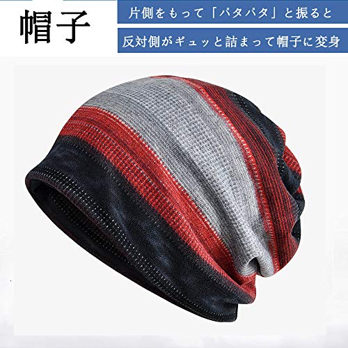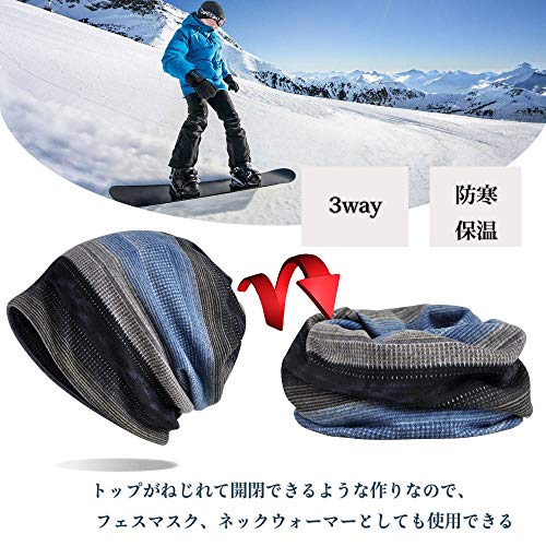 ニット帽 メンズ レディース ネックウォーマー 多機能 三重使用 ワッチキャップ 防寒 保温 伸縮 軽量 シンプル おしゃれ スノーボード スキー ランニング 自転車 秋 冬 男女兼用 (缟模様-カーキ)