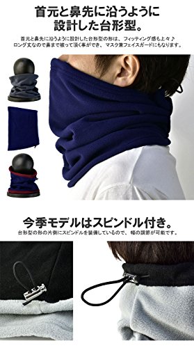 そしてこのネックウォーマーは、厚手のフリース素材を採用しています。片側にはスピンドルも付いており、幅の調節を自分自身で簡単に行えて、隙間を無くせます。ネックウォーマーの暖かい空気を外に逃がさない上に、外からの冷気を入らせずに済み、冬の寒い気温にも対抗できます。
