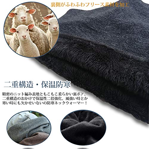 ネックウォーマー,WOOSOO 秋冬 防寒 ニット 【裏側ふわふわ起毛素材加工】