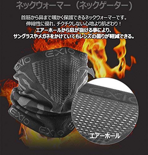 EXIO ネックウォーマー フリーサイズ 冬 防寒 防風 バイク 登山 スポーツ 速乾