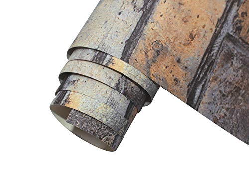 HaokHome H1079 簡単 モダン風 DIY 3D ブラウン カーキ レンガ タイル 石の壁紙 45cm×3m 寝室のリビングルームテレビの壁の壁装飾