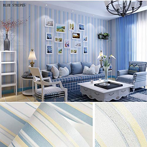 シンプルなモダンなソリッドカラーの白い縦のストライプフルショップのベッドルームの壁紙暖かいミニマリストオフィスのリビングルームの壁紙 (Color : Blue stripes)