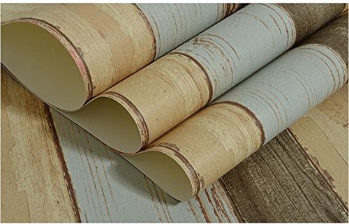 HaokHome 205ビンテージ木目ウッドパネル壁紙ロール53cmx10mブルー/ベージュ/ブラウン木製プランク壁画ホームキッチンバスルーム装飾