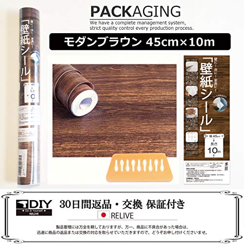 「RELIVE」壁紙シール 簡単 模様替え おしゃれ 木目 DIY【45cm× 10m】 (モダンブラウン)