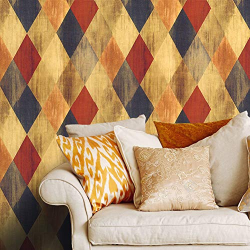 HaokHome 610951 モダンな格子縞壁紙ダイヤモンドの壁のステッカーカーキ/青ブルー/赤レッド かんたん貼付シールタイプ 家の装飾 45cmx6m