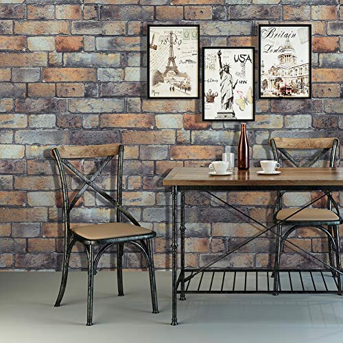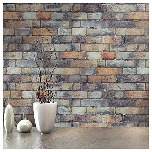 HaokHome 370901 レンガ タイル れんが 煉瓦 3d 壁紙 0.53mx10m グレー ブラウン はがせる 簡単 おしゃれ モダン 家の壁紙 装飾