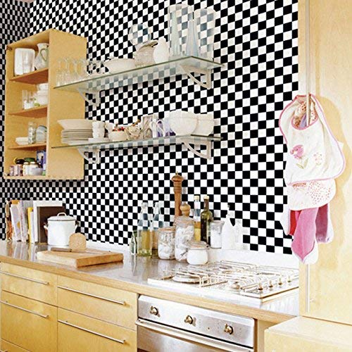 Lupo(ルポ) はがせる 壁紙 賃貸OK 壁紙シール 木目 モザイク 市松模様 大理石 花柄 ウォールステッカー クロス はがせる 地中海 北欧 西海岸 風 花柄 ダマスク クロス ロマネスク 防水 壁紙シール リフォーム DIY 45cm × 10m (格子柄 ブラックxホワイト)