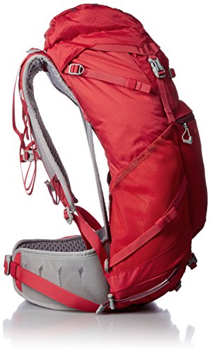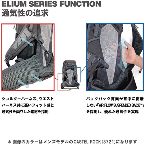 通気性に優れたメッシュ素材やベンチレーション機能を備えている発泡素材を採用しており、外側のサイド、ヒップベルト、フロント部分に登山用の小物を収納するのに便利なポケットが配備されていますので、パッキングのしやすい登山用リュックになります。メイン収納スペースへとジッパーで大きく開く事ができますので、荷物の出し入れもスムーズに行える登山リュックです。