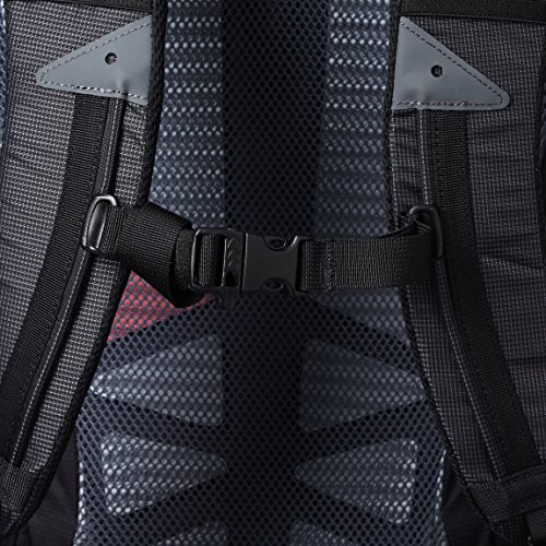 体にリュックをより密着させられるようにチェストバックルも付いています。背面素材には豊かなフィット性と通気性を兼ね備えているメッシュ生地を採用しており、生地の内側部分には荷重からくる負担を軽減する衝撃吸収材が封入されていますので、長時間の登山中も上半身への負担少なく快適に荷物を携行できる登山リュックです。