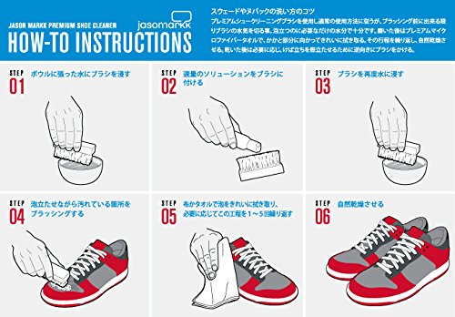 スニーカー用消しゴムでも落ちない場合やラバー以外の部分は洗剤を使って汚れ落とします。この場合洗剤を使い泡立てながら汚れている部分をブラッシングしていきます。ジェイソンマークはスニーカー専用のメンテナンス用品として、スニーカー愛好家の中でかなり人気があり、またこの洗剤1つで約200足分洗浄できます。スニーカーを大切にしたい方におすすめの洗剤です。