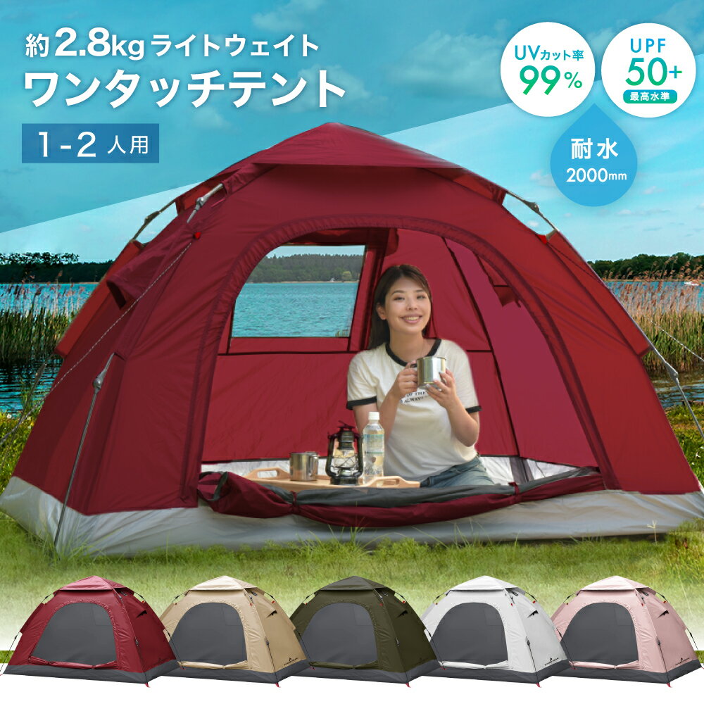 初めてキャンプを始めるという方には、設営が簡単なテントをおすすめします。こちらのテントはワンタッチテントと呼ばれているもので、その名の通りワンタッチでの設営が可能です。