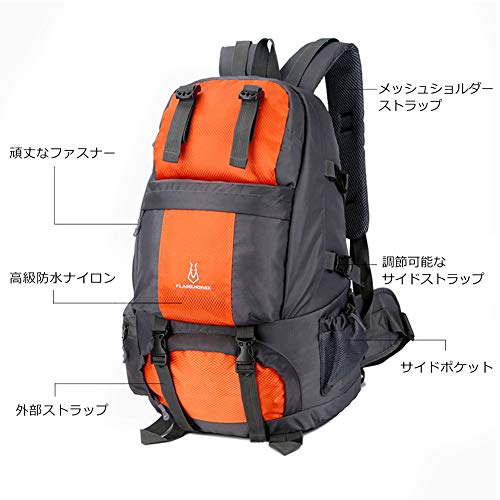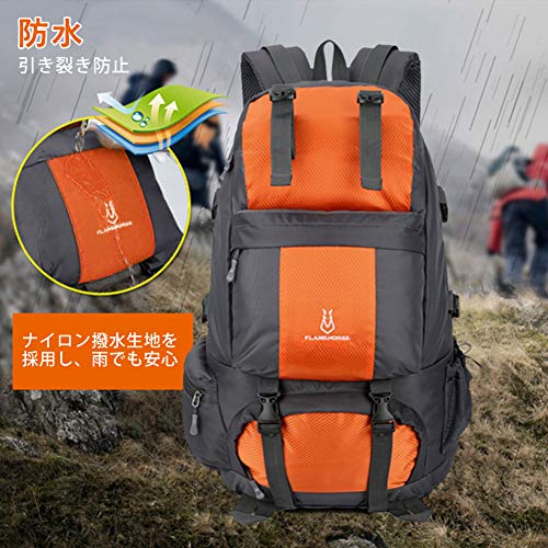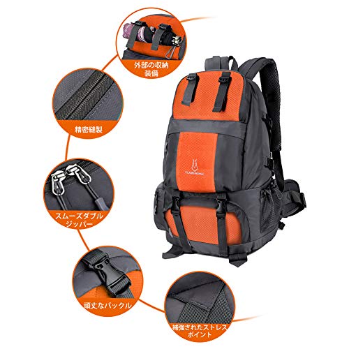Wohuu 登山バッグ バックパック 50L リュックサック 大容量 防水 軽量 多機能 アウトドア ハイキング キャンプ 旅行用 登山リュック 防災 オレンジ