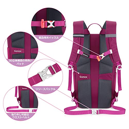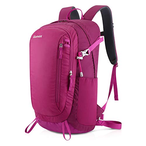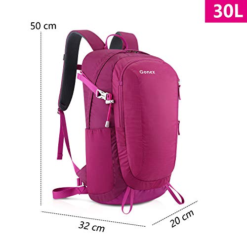 GONEX リュックサック 撥水ナイロン PC収納 軽量 バッグパック 30L 防災/日帰り旅行/登山 男女兼用 (ローズレッド)