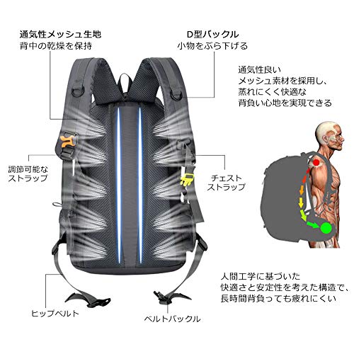 軽量 防水 バックパック 登山リュック キャンプ用 リュック 登山初心者 日帰り用 山小屋一泊用