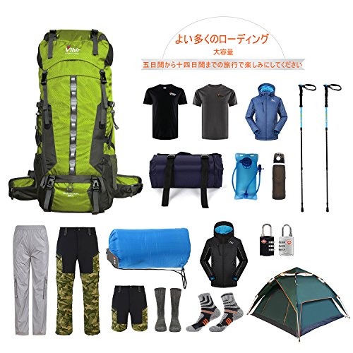Vihir 登山リュック アウトドアバックパック 40L 大容量 軽量 防水 高通気性 レインカバー付き 多機能 男女兼用