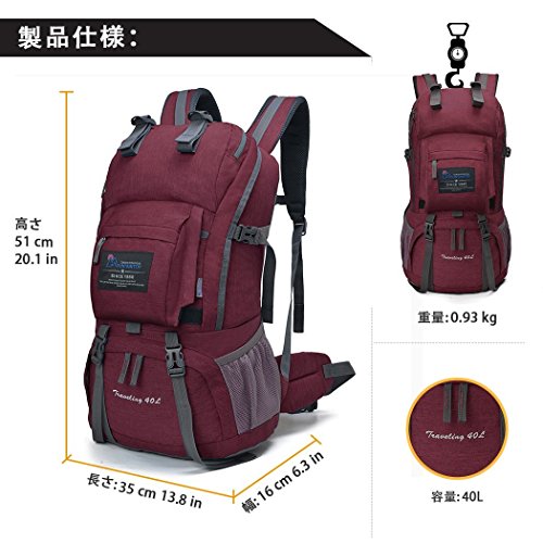 アウトドア 登山 バックパック, 40L大容量 防水 軽量 多機能 メンズ/レディース