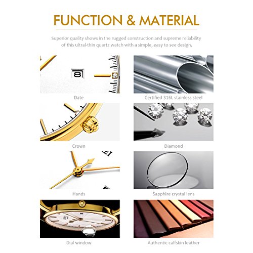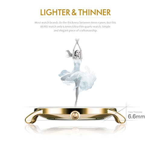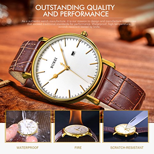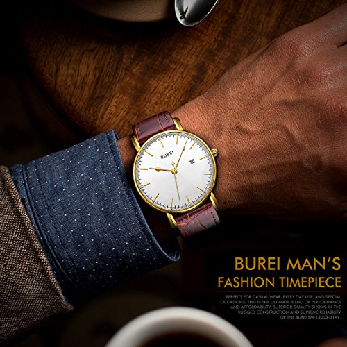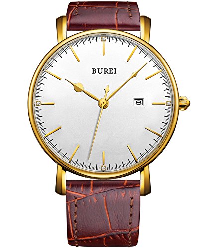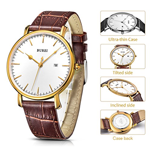 (バオショ)BUREI 極薄型腕時計 シンプル 日付 ホワイト文字盤 ゴールド JP-13002-P04AG