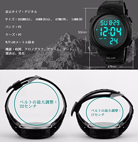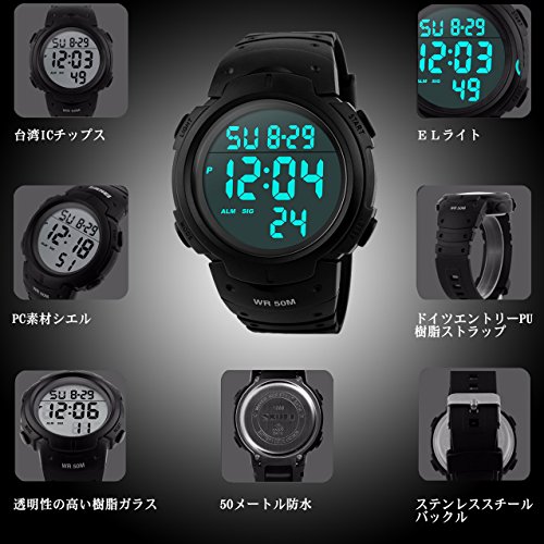 メンズ デジタル腕時計 50m防水ZAYIYA