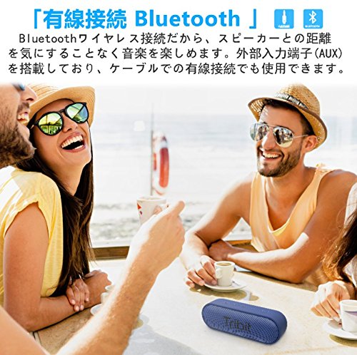 Tribit Bluetooth スピーカー (12W Bluetooth4.2 24時間連続再生)【低音強化/IPX7防水/ブルートゥース4.2/デュアルドライバー/大容量バッテリー内蔵】(ブルー) Xsound GO