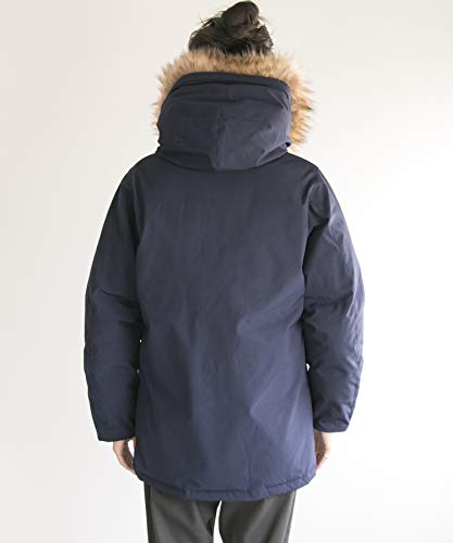 人気ブランド「アーバンリサーチ」のグリーンダウンフードコートは、表地にテフロン加工が施された撥水性の高いポリエステルコットンを採用し、不純物を取り除いた保温性に優れる再生羽毛を封入していますので、気温低めな寒い冬の時期のタウンユースでいつまでも暖気をウェア内部に溜め込みながら温かく快適に過ごせます。