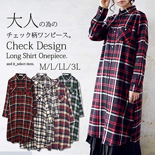 レギンスや細身のパンツとの相性が良く、きれいめなレイヤードスタイルに仕上げられるネルシャツワンピースです。チェックだけに限らず、無地のネルシャツもありますので、お好きな方から選択出来ます。