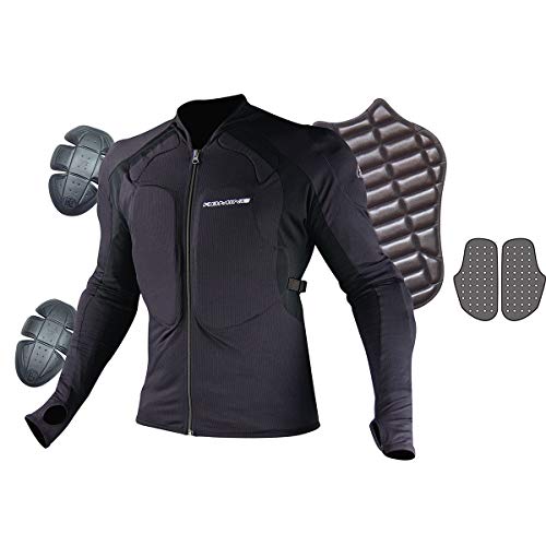 コミネのSK-693CEアーマードトップインナーウェアの下は普段着のTシャツでOKです。ジャケットは少し大きめが必要になります。プロテクターを取り外してクリーニングすれば清潔を保てますので快適ですね。肘のハードシェルに落ち着きがなければゴムバンド等を上下に巻いて固定しましょう。生地に伸縮性がありますので幅広い体型に対応可能です。