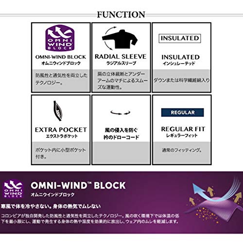 コロンビアのオムニウインドブロックはブランドが独自に開発した防風性と通気性を両立している機能になります。冷気の堪える秋冬のアウトドア環境下で役立つ機能です。