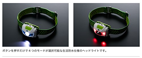 ロゴスのヘッドライトROSYは、上部に付いているボタンを押すだけで、強モード、弱モード、赤点灯、赤点滅の計四つのモードに変えられる防水仕様の口コミ評判の高い人気ヘッドライトになります。