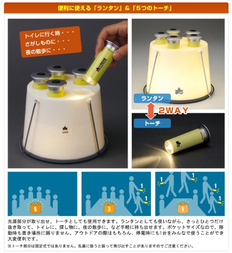 ロゴスのトーチランタン5は、トーチを抜いてお好みの光量に調節したり、トーチ単体でハンディライトとしてアウトドアでの夜間移動シーンなど前方を照らす使い方もできる2WAY仕様のランタンです。