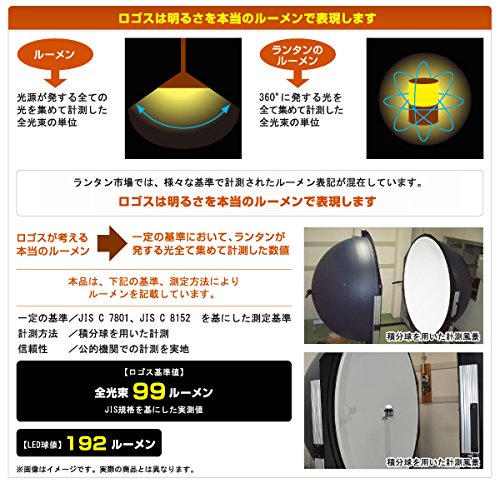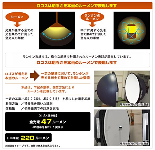 明るさ /〈LED球値〉約52ルーメン〈ロゴス基準値〉約72ルーメン
