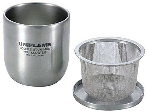 ゆのみ型の保温機能のあるマグはたくさんありますが、茶こしとフタが付いているのはユニフレームぐらいじゃないでしょうか、ユニフレームはときどきおもしろい商品を作るのがいいところですね。このゆのみならアウトドアでもゆっくりお茶を楽しむことができます、またフタは茶こし置きとして使えます。