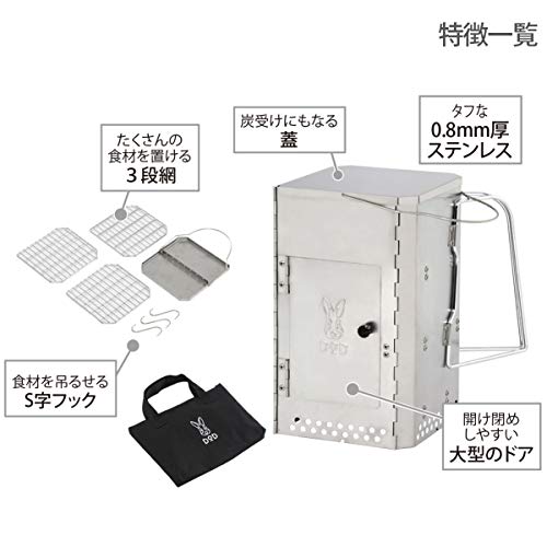 すごいよカオルさんはこれまた変な名前ですね、ですが1台で4通りの使い方ができるアイテムです。まず炭火の火起こしとして使えます、着火剤と炭を入れておけば楽に火起こしできますよ。次に燻製器としても使えて、バーベキューだけで飽きないように燻製も同時に作ることができます。また焚き火台としても使えて、さらにオーブンとして使えばアウトドアでピザが焼けます。これだけの使い方ができて折り畳みができるのでキャンプにもってこいですね。