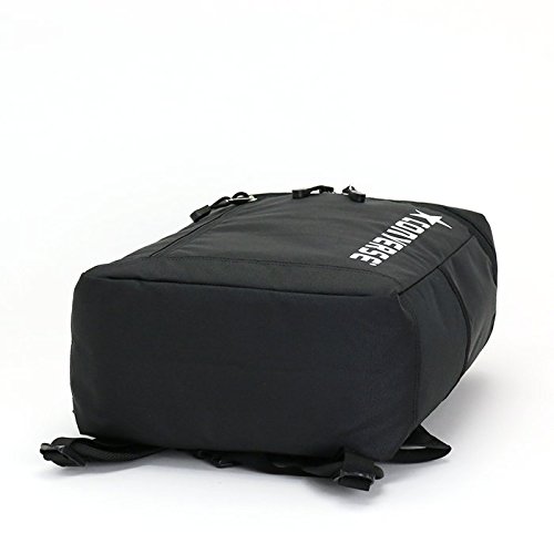 小雨程度の雨であれば問題のない防水性を備えており、フロント部分に大きく文字プリントが施されているスポーティーなおしゃれデザインのリュックです。