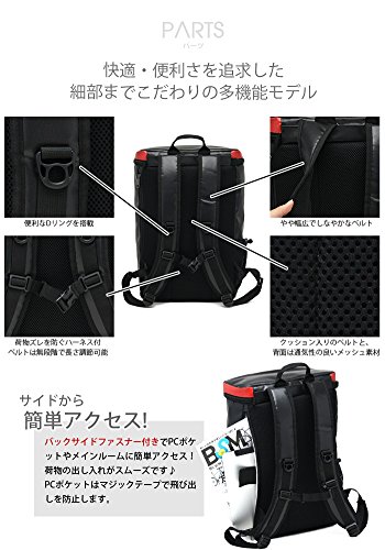 内部にはクッション材としてウレタンを封入したPC専用の収納ポケットも配備されていて、B4サイズのファイルや書類をスムーズに入れられる大容量のスペースが確保されています。その他にも各箇所へと多彩なポケットが配備されていますので、小物が多くても綺麗に整理して管理しておく事が出来るスクエアリュックです。