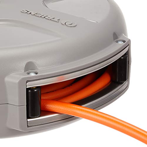 狭いガレージでも場所をとらない、コンパクトタイプのエアホースリールです。巻きぐせのつきにくいホースを使用しているので、引き出し、巻き取りが楽に行えます。