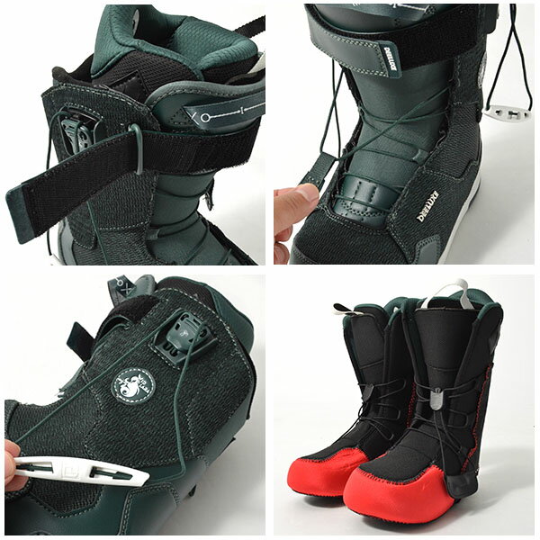 昔に比べて比較的、若い世代はひもが結べない人が多くいます。そしてそうでなくても、ひもを結び、ひもで締め具合を調節するのは面倒で結構、力がいります。そんなボーダーのわがままに答えた画期的なダイヤル操作で、ひもではなくワイヤーで締め具合を調節するのがboaシステムです。特に力の弱い女性にはおすすめですよ。
