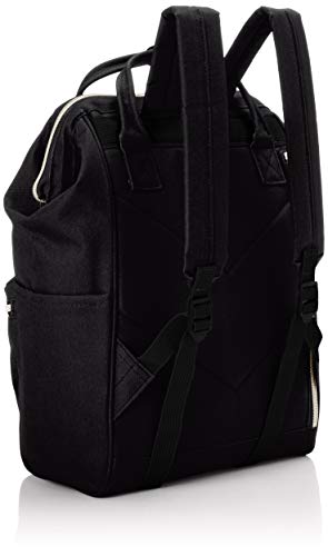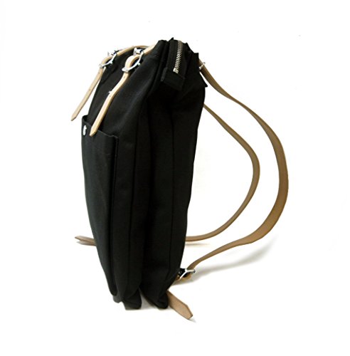 リュック素材に丈夫で難燃性に優れたコットンキャンバス生地を採用している為、堅牢な作りのリュックとなっています。黒のリュックボディへとレザーベルトがアクセントとなっていて、おしゃれでかわいいデザインと口コミでも評判のリュックサックです。