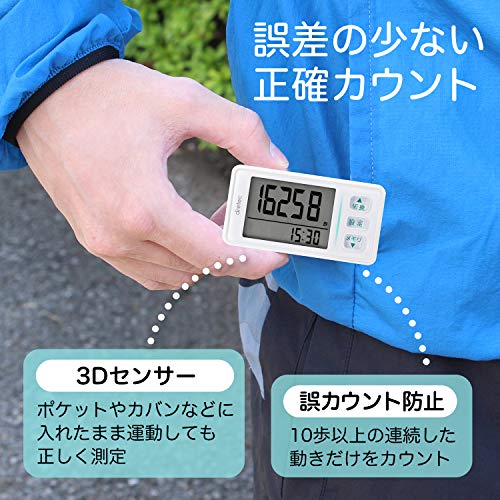 腰周りに取り付けしないでも正確に歩数を算出して表示してくれる3D加速度センサー付きの人気歩数計になります。