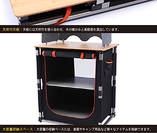常に物が溢れてごちゃっとしたキャンプ、気になりませんか。ならばDODから出ている、マルチキッチンテーブルを選んで損はしません。見栄えがよいブラック/オレンジと、カーキの2カラーから選べます。3段に分かれたストレージは170Lの大容量で、天板は多目的なテーブルとして活躍してくれます。