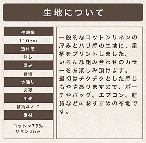 ここでご紹介している「基本のエプロン」は綿麻生地を使用しています。綿の柔らかさと麻の丈夫さを併せ持つ扱いやすい生地です。柄もカラーも豊富です。