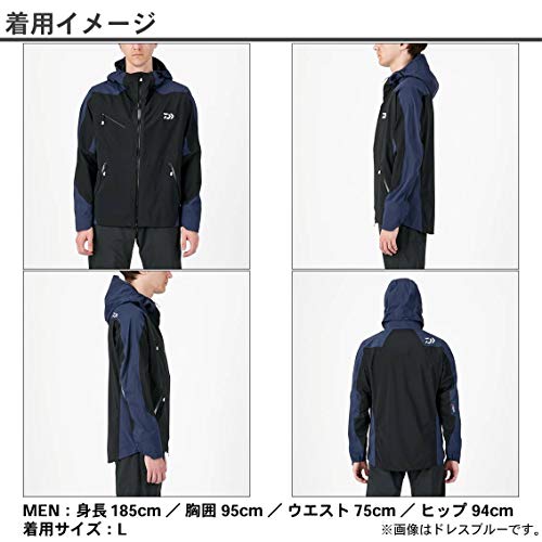 カラーはブラック、グレーの部分がブルーになったドレスブルーの2種類。サイズはMから3XLで、3XLはブラックのみのラインナップになっています。レインとしての機能も十分なので、海水が風に乗ってくるようなフィールドでの釣りもバッチリです!