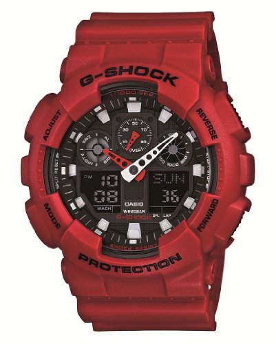 1/1000秒ストップウォッチ、耐衝撃構造、20気圧防水機能、耐磁時計を搭載したモデルです。ソーラー充電機能は無く、電池式なので注意してください。アナログとデジタルが組み合わさったデザインに人目を引く赤色はストリートファッションシーンで映えるモデルです。