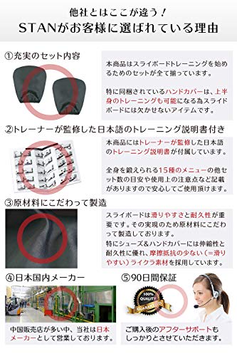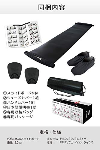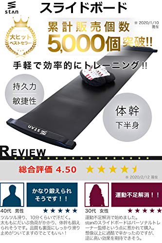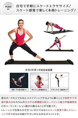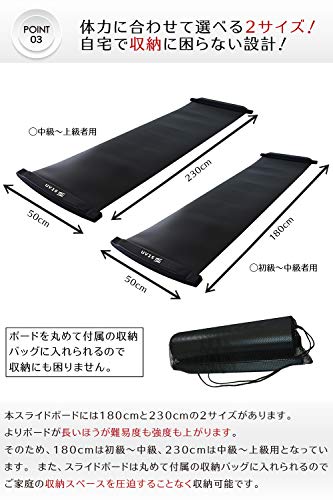 スライドボードはいくつかのメーカーから出ていますが、こちらの商品はAmazon.comで今現在最も人気のあるタイプです。180cmと230cmの2種類ありますが、180cmもあれば十分に負荷を得られます。
