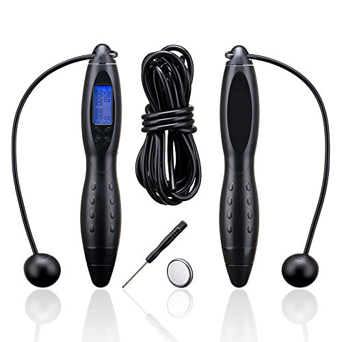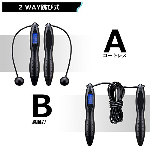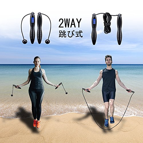 回数カウンターと運動時間、さらにタイマーとおおよその消費カロリーがわかる便利なエア縄跳び器具です。先端に重しが付いているので通常の縄跳びと同じ感覚を覚え、運動効率を高めてくれます。