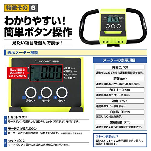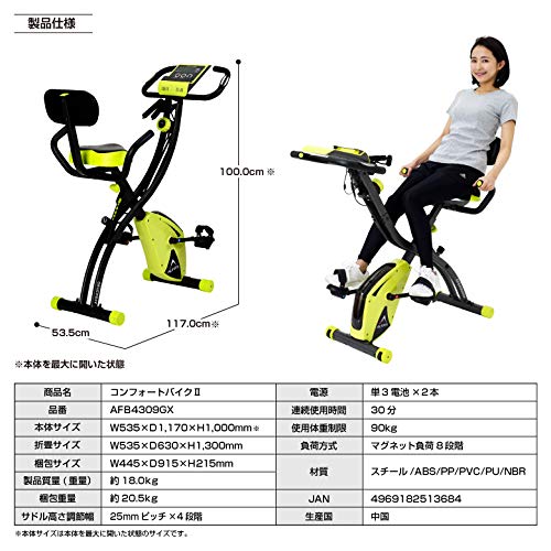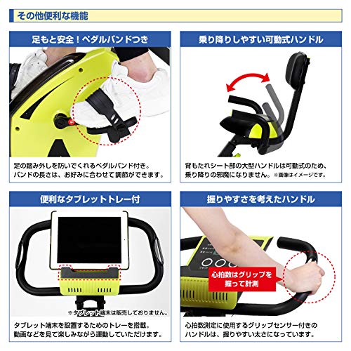 背もたれが付いて、しかもイスの横にサイドハンドルが付いているフィットネスバイクです。この価格でここまで付いているのは無く、強度も申し分ないので非常におすすめできます。また漕いでいる最中の音の発生もほとんど無いので、運動紹介で書いたとおり時間帯問わず使用できます。