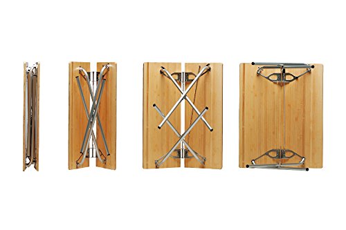 特長として一番に目に入るのが、天板に使われている竹の素材感です。その素材を生かした美しい表面加工がされており、アウトドアでのバーベキュー料理など、天板を傷めるような使い方は、躊躇してしまうほどの美しい仕上がり。自宅でも大人数が集まる時に、テーブルとして使っても全く違和感がありません。場所を選ばないので、さまざまなシーンで移動型の家具としての使い方ができます。