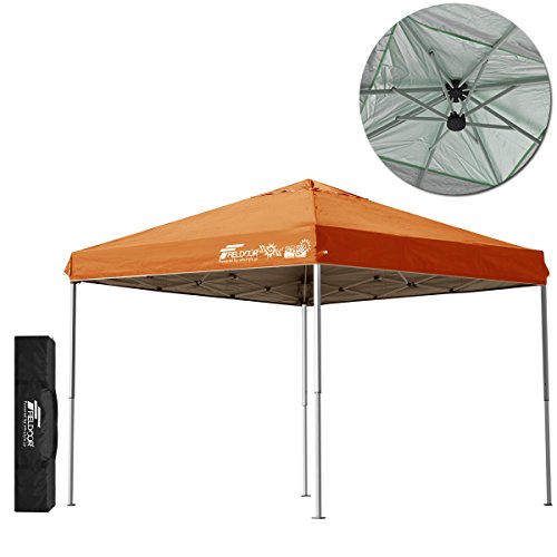 FIELDOOR 組立て簡単!! 2.5×2.5m ワンタッチタープテント 【オレンジ/強化版】 G03 屋根柱が8本に増強 別売りオプションパーツが豊富 高耐水加工 シルバーコーティング UVカットコーティング