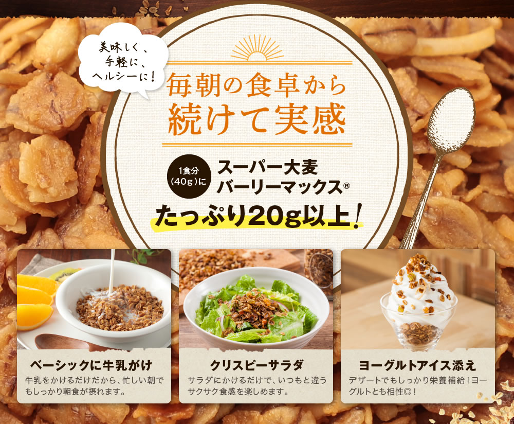 健康によい成分がたっぷりと含まれている、スーパー大麦を使ったグラノーラです。簡単に栄養面で優れるスーパー大麦を摂取できるため、日頃から栄養バランスの取れていない食事をしている人には、特におすすめです。