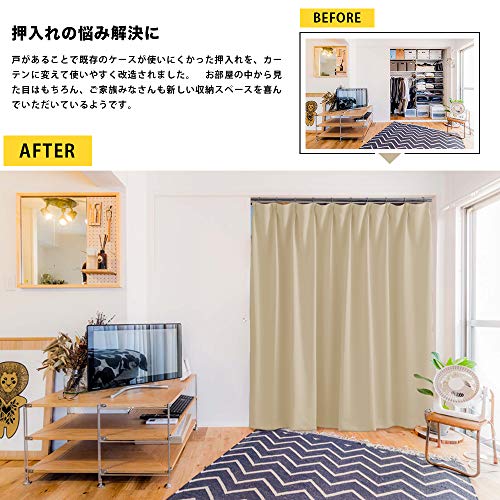 突っ張り棒を仕切りたい場所に突っ張って、穴が開いているアコーディオンカーテンを通せば簡単に空間を仕切ることができます。